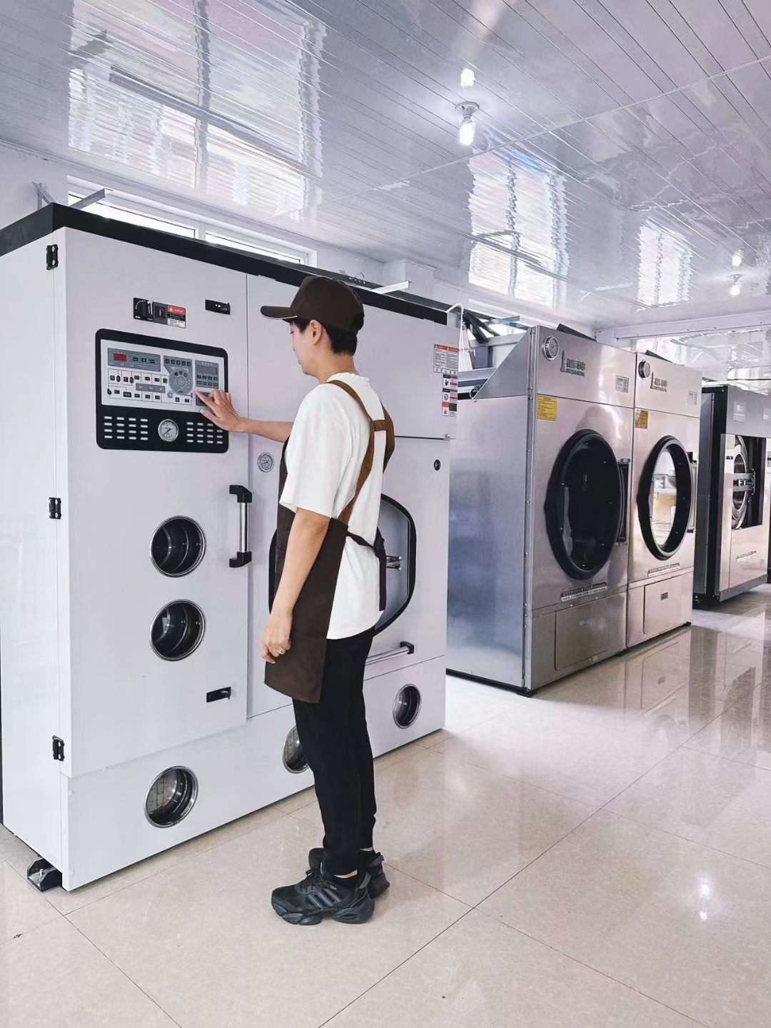 天津洗衣工廠店用戶柒喜洗護(hù),使用三河潔神提供的干洗機(jī)(P220FDQP-C)一臺(tái),16kg、30kg、50kg水洗機(jī)各一臺(tái),50kg烘干機(jī)兩臺(tái)